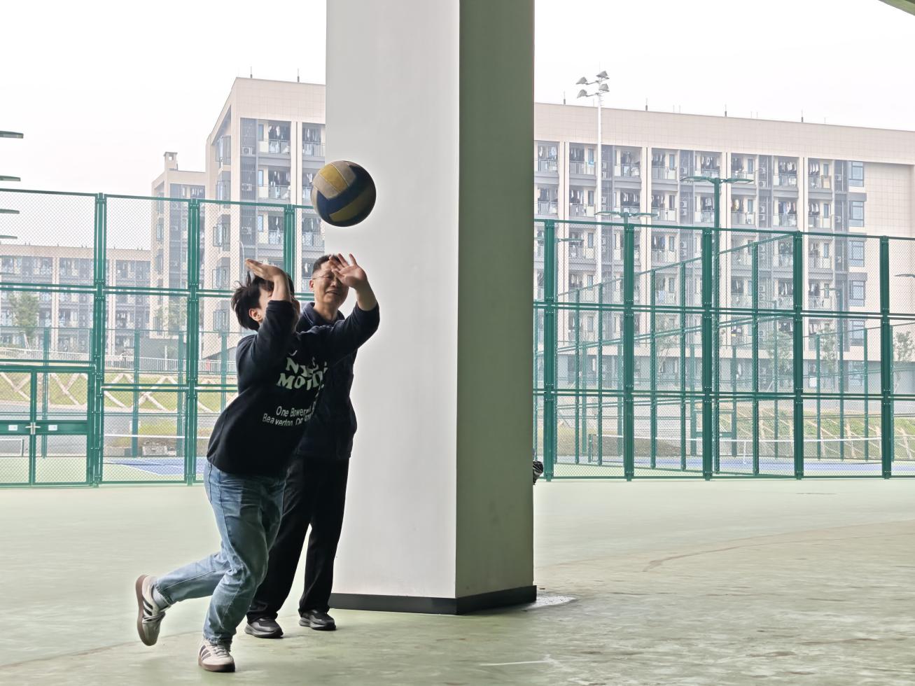颠传排球项目里,选手们弯腰屈膝、默契并肩,双眼始终紧紧锁定着排球。每一次平稳的颠传,都凝聚着两人心有灵犀的协作力量;坚持时长的每一秒突破,都引得场边掌声雷动。大家在这慢节奏的配合中,尽情享受着运动带来的纯粹乐趣。