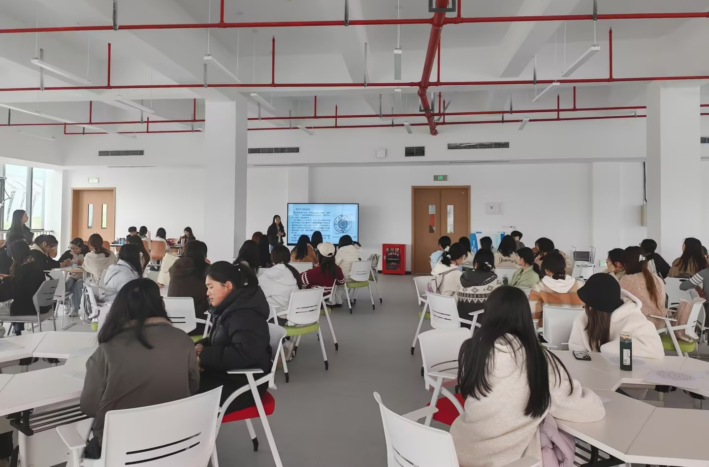 活动伊始,顾咸霜老师致欢迎辞,向全体女同学送上节日祝福随后,陈雪老师以“落笔生花——与内心色彩对话”为主题展开讲解。她从曼陀罗的梵语本意“圆满”入手,介绍了其在荣格心理治疗中的运用,阐释了圆形图案所具有的和谐特质与自我映照功能。通过“调整身心—觉察感受—随心创作—记录感悟—自我疗愈”五个步骤的讲解,她以“涂色时不用思考,治愈会自己发生”的温柔话语,引导同学们放下杂念,专注当下。