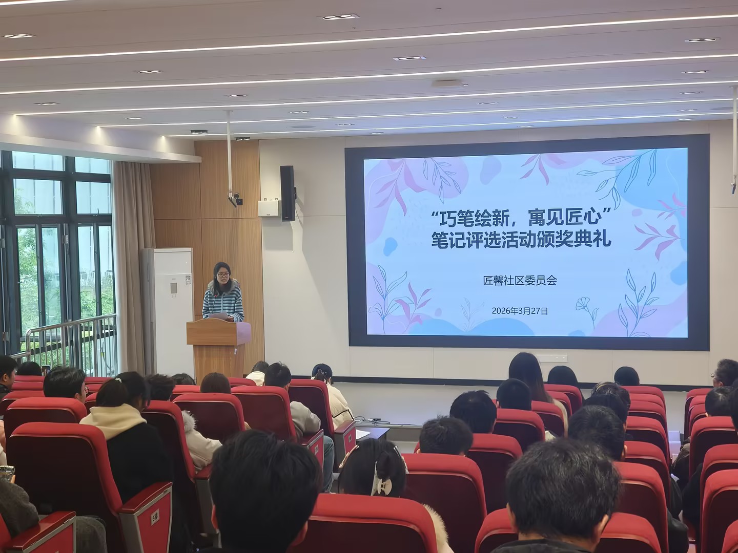 2026年3月27日,匠馨社区在卓智楼329报告厅隆重举行“巧笔绘新,寓见匠心”笔记评选活动颁奖典礼。各工科公司党委副书记、员工社区委员会主任、辅导员应邀出席,为获奖同学颁发荣誉证书。现场气氛热烈,获奖员工代表分享了笔记整理的思路与方法,展现了勤勉踏实的学习态度和精益求精的匠心精神。
