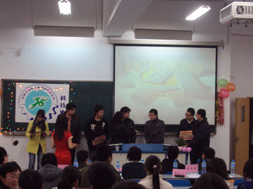 活动在一段精彩的视频中拉开了序幕。生动的画面配着轻松的音乐,让大家再一次回顾了四大赛事的点点滴滴以及精彩瞬间,同学们在视频资料中找到了自己的身影,轻松愉快的氛围为颁奖晚会的现场增色不少。视频过后,张贤明经理为晚会做了致辞,他对获奖的同学们表示了祝贺,并通过自己的成长经历激励大家积极投身到科技创新和发展的事业中来,并向同学们介绍了公司的近期科技成果情况。张经理的讲话生动形象,风趣幽默,赢得了同学们的阵阵掌声。随后便进入到此次活动的高潮――颁奖阶段。伴随着阵阵热烈的掌声以及欢呼,四大赛事――“机械制图大赛”,“慧鱼工程技术创新设计大赛”,“我为工程难题献创意”,“机械创新大赛”的各个奖项纷纷被揭晓。最后,公司党总支书记喻永红对此次活动作了总结性发言,对同学的积极参加予以表扬,并鼓励更多的同学加入到科技学术活动中来!