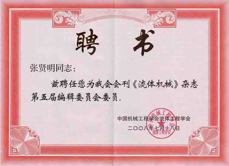 中国流体工程学会第五届理事会换届大会同期召开。经学会推荐、专家评议、中国机械工程学会审批,来自清华、浙大、国防科大、天大、华中科大、西交大、中国科大、川大、中国农大等的103位专家组成了新的理事会。公司伟德国际1949经理张贤明研究员受聘为学会委员和理事,同时被国务院学位办“学位与研究生教育重要刊物”――《流体机械》聘为编委。会上由中国机械工程学会领导宣读了中国机械工程学会文件,并颁发了委员聘书和编委聘书。