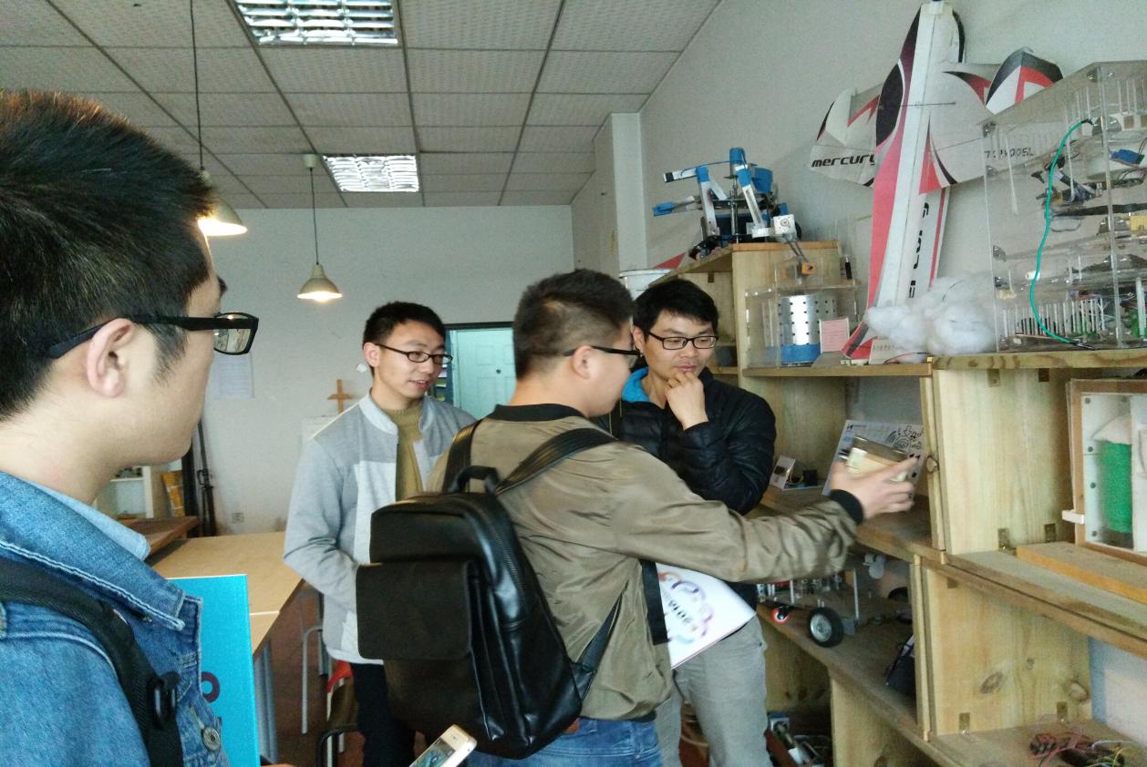 西南交通大学工程训练中心杨平副主任和创客空间负责人李君老师等师生代表以及柴火创客空间的工作人员对我们的到来表示热烈的欢迎。首先,他们为我们讲述了创建创客空间的过程以及他们创客空间取得的目前的运行情况和对未来的展望。接着他们带领我们依次参观了创客空间,并为我们讲解了如何进行空间的布局,设备的使用,以及向我们展示了员工创客制作的各类创新产品。