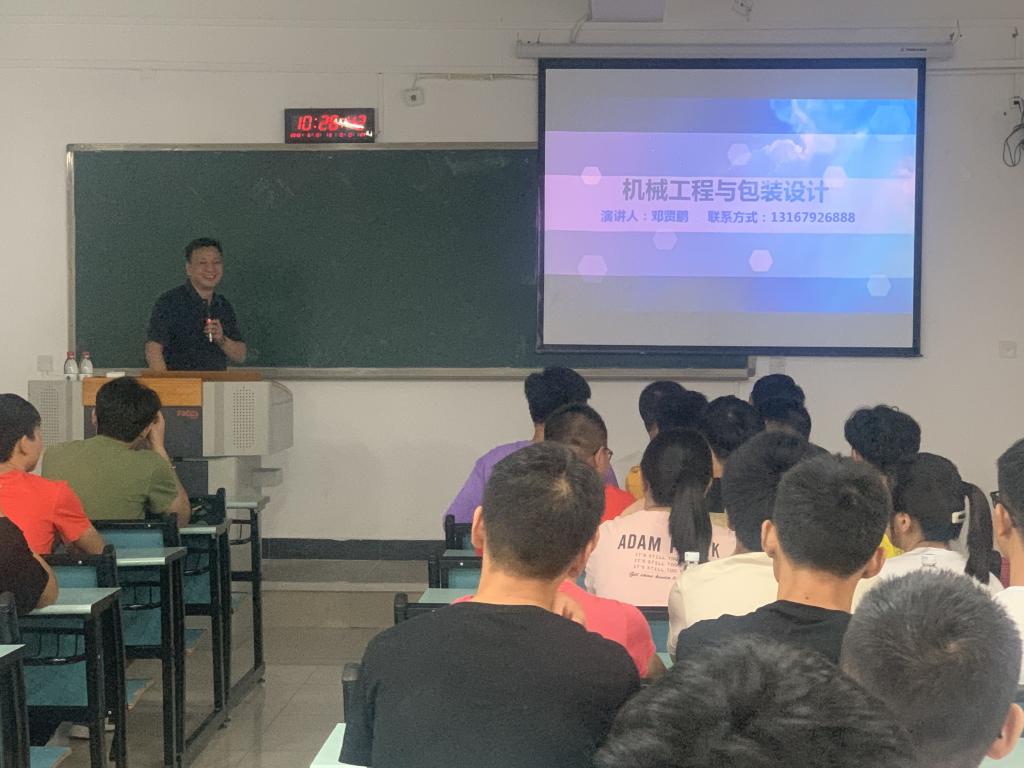 在新生教育活动第二阶段里,新生们分别接受了机械制造及其自动化、机械电子工程、汽车服务工程、包装工程四位系主任们所做的专业导读。系主任们从本专业建设情况、学习要求、行业前沿分析及学习规划等方面让新生们全方位、立体化的了解自己在大学四年里即将学习的专业情况。这些内容十分接地气,及时的解答了新生们普遍存在的对专业学习的困惑,为2019级新生更好的开展专业学习奠定了基础。其中,包装工程系还邀请到重庆鼎盛印务有限公司总经理邓贤鹏 为2019级新生做了一场题为“机械工程与包装设计”的专题讲座,员工们积极性高,现场反响热烈。