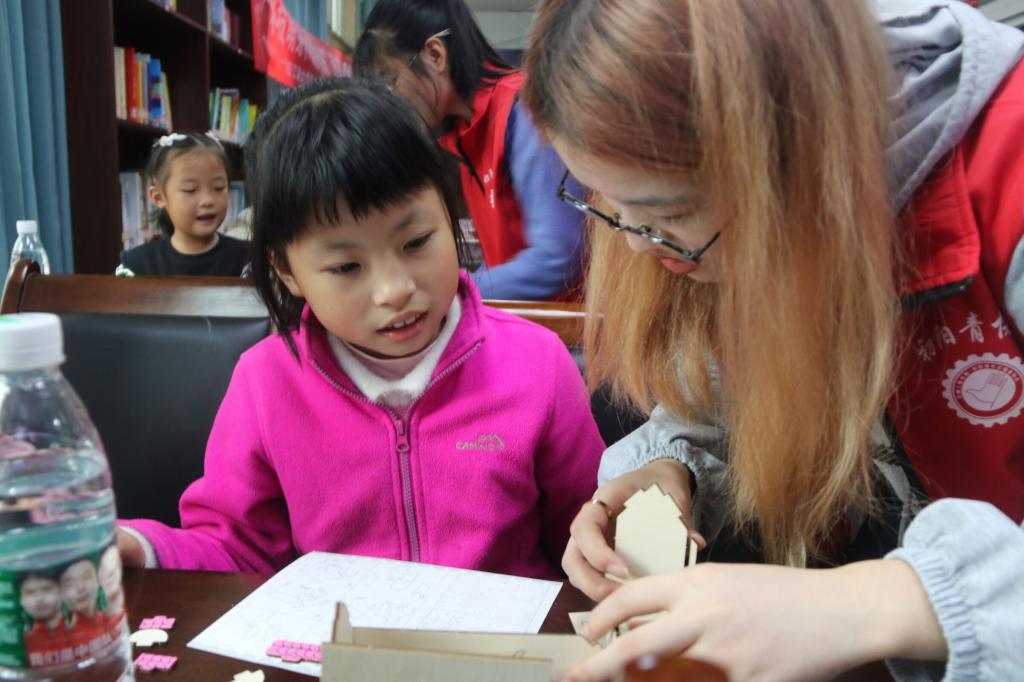 活动伊始,小朋友们陆续和家人来到活动地点,志愿者们牵着小朋友们的手走进教室。第一堂课上,志愿者代表给小朋友们科普3D打印和激光雕刻的相关知识,通过视频、图片加真实模型的结合,让小朋友们进一步了解现代的部分科学技术。随后让小朋友们观看3D打印和激光雕刻的作品,小朋友们都充满了热情和兴趣。课堂期间志愿者们拿出用激光雕刻打印模型和小朋友们一起拼接,锻炼小朋友们的动手能力,也更好的让小朋友们理解激光雕刻的原理。在志愿者们的协助下,作品顺利完成,小朋友们脸上也洋溢着快乐的笑容。第二堂课上,志愿者小讲师通过ppt和视频结合,给小朋友们讲解南水北调和会动的画两个游戏的原理以及演示实验过程。志愿者们用提前准备好实验材料,让每个小朋友都亲自感受科学实验的魅力,志愿者们也时刻陪同照顾,帮助着小朋友们实验的进行。在一个个小实验中,小朋友们心中科技的种子已悄然萌芽,期待它的茁壮成长。活动尾声,志愿者与小朋友们合影留念。本次科普活动圆满结束。