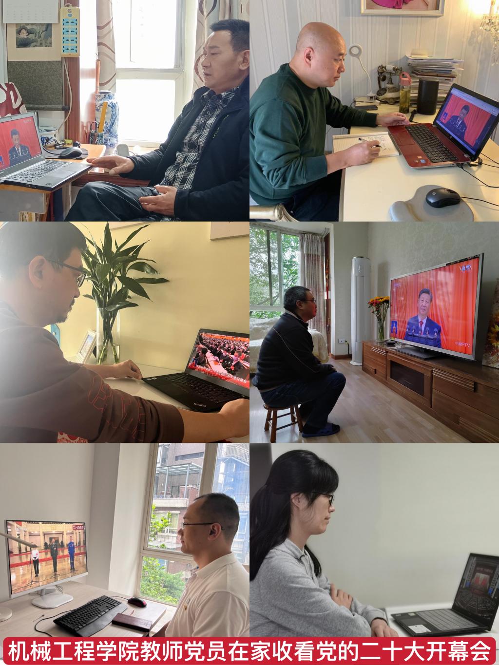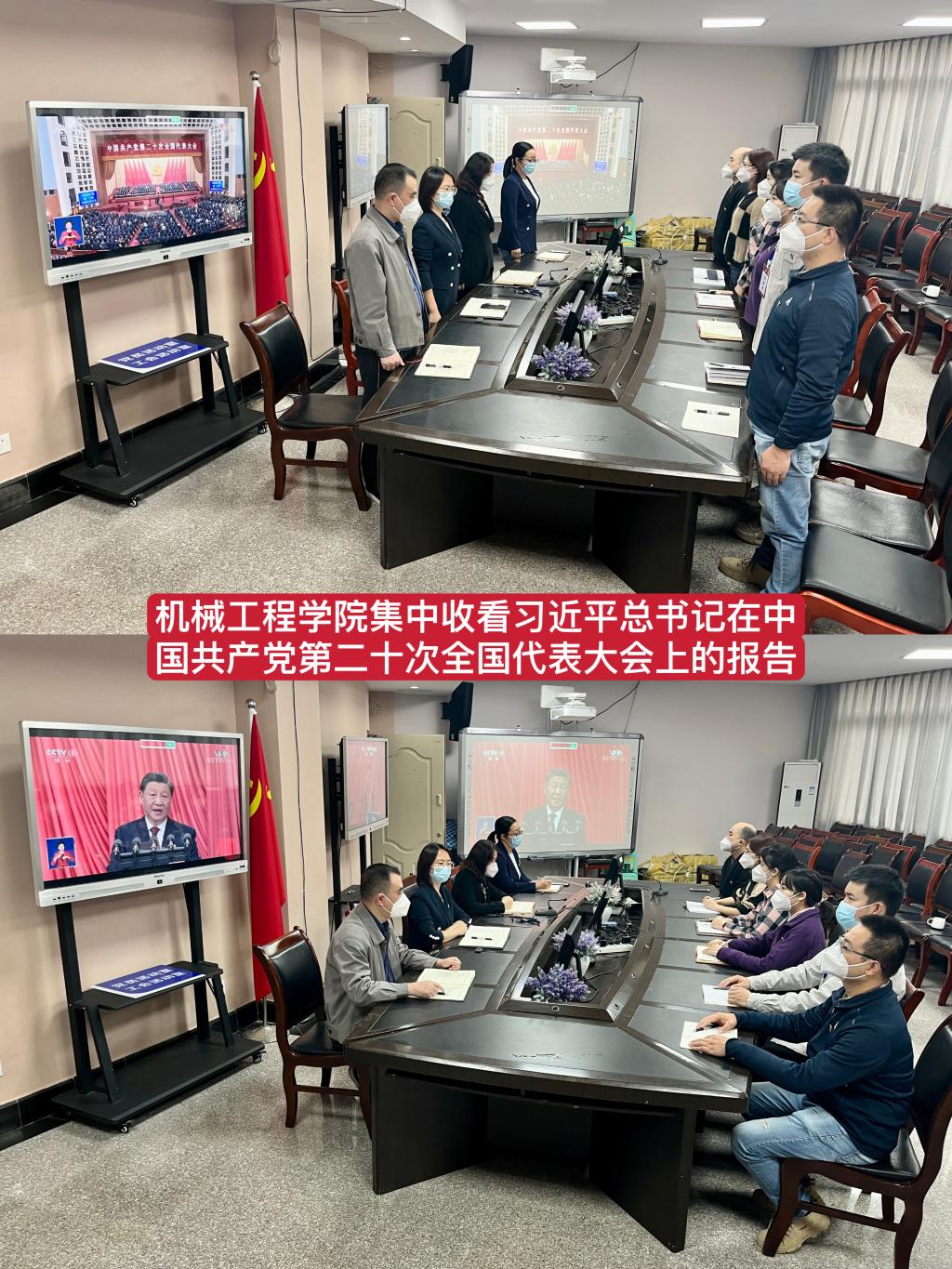 公司在校参与疫情防控的教师党员在公司会议室集中观看开幕会直播。公司老师和员工利用电脑、手机在办公室、寝室或居家自行观看。