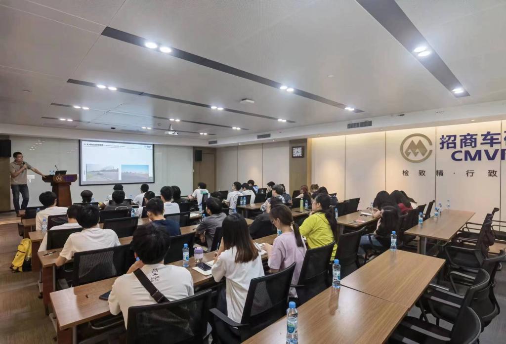 下午,由招商车研智能网联汽车仿真测试工程师丁雪聪为同学们进行了题为“仿真测试与西部智能网联汽车测试评价场景库”的主题讲座,结合先前同学们走访参观的测试部门,深入浅出地介绍了开展仿真测试的原因及必要性,并且结合工程分析案例生动介绍了在环仿真、场景构建等智能网联汽车仿真分析测试关键技术,令同学们进一步清晰了仿真分析在产品开发、测试、分析过程中的作用及定位。
